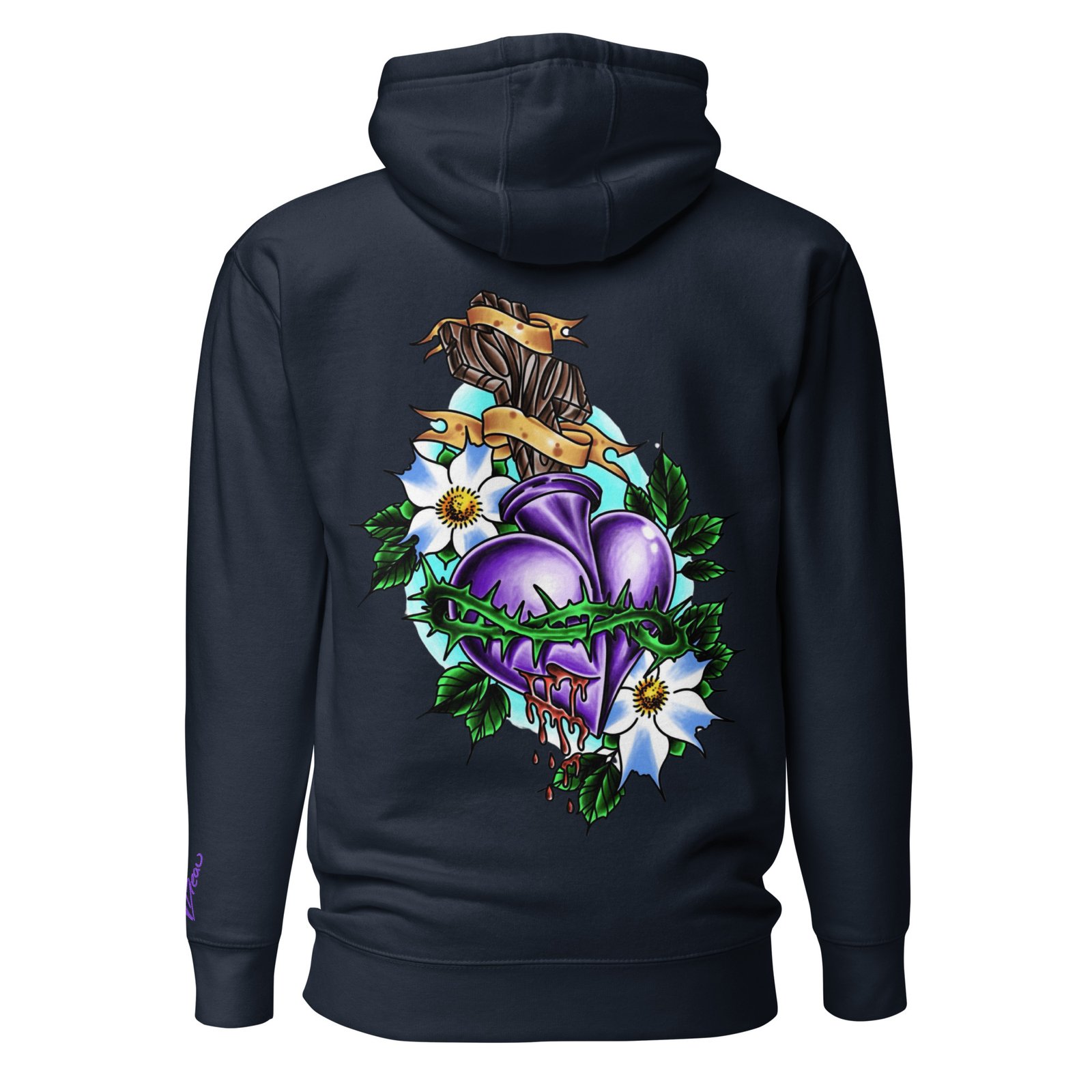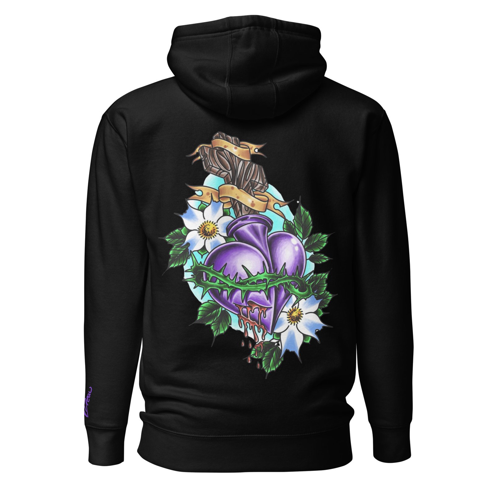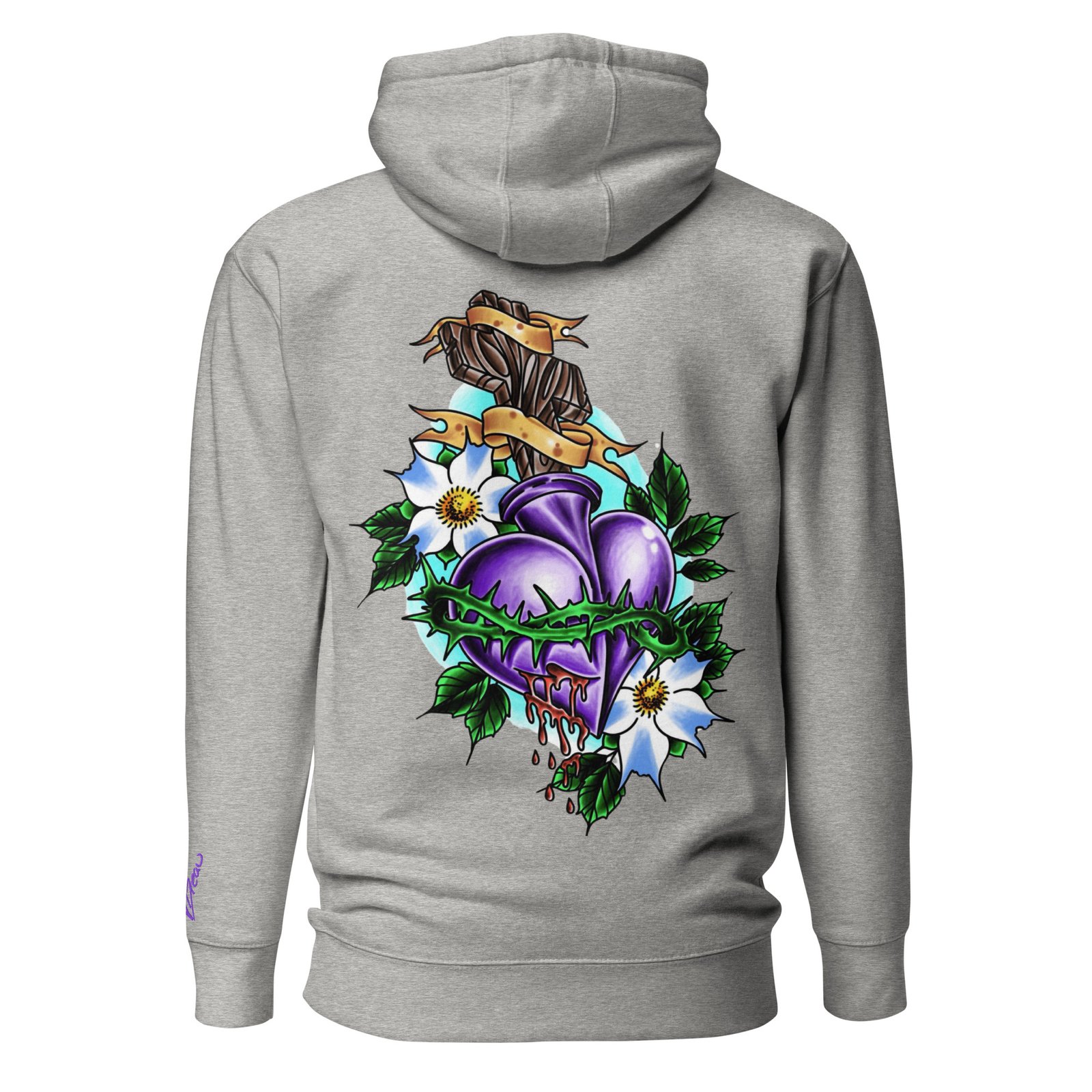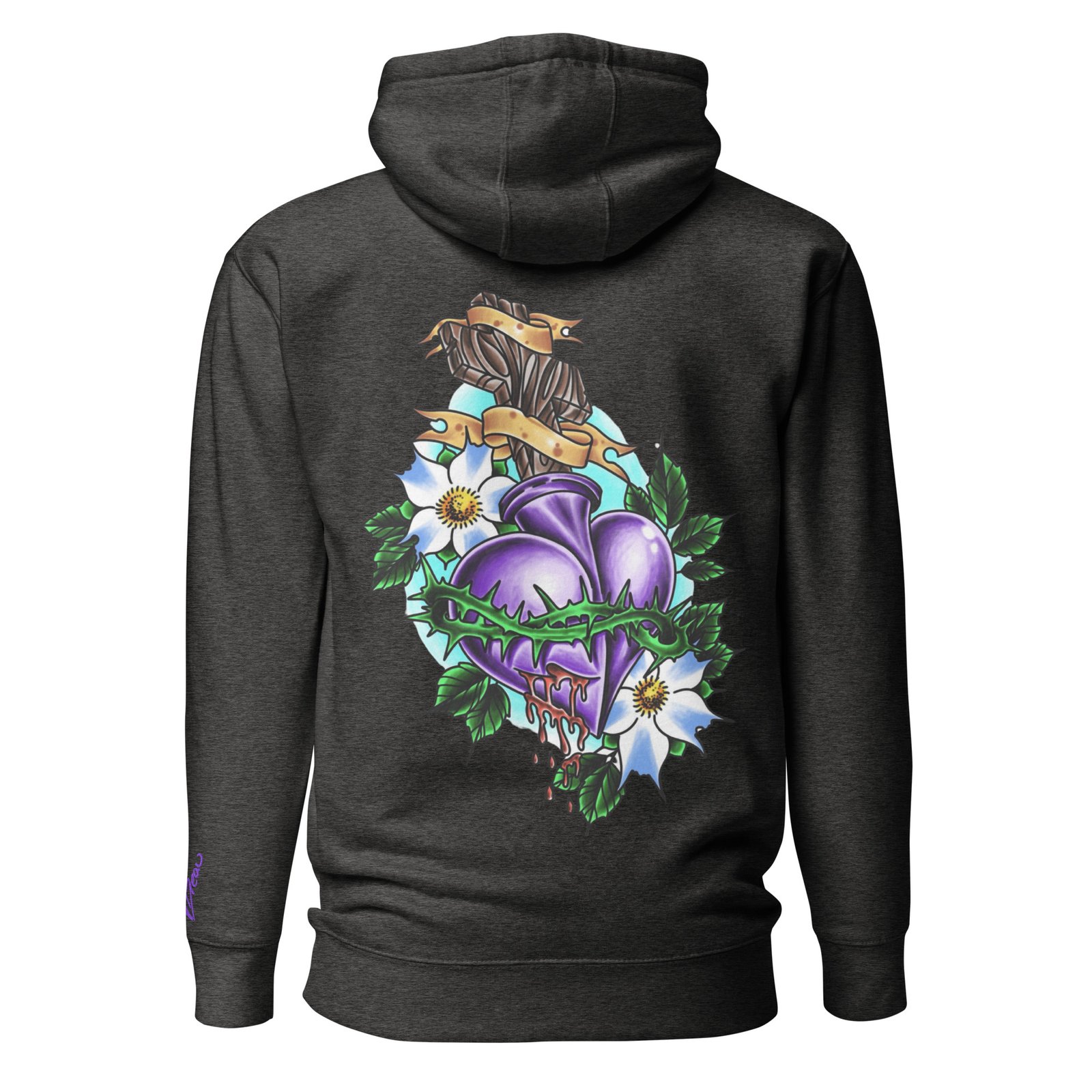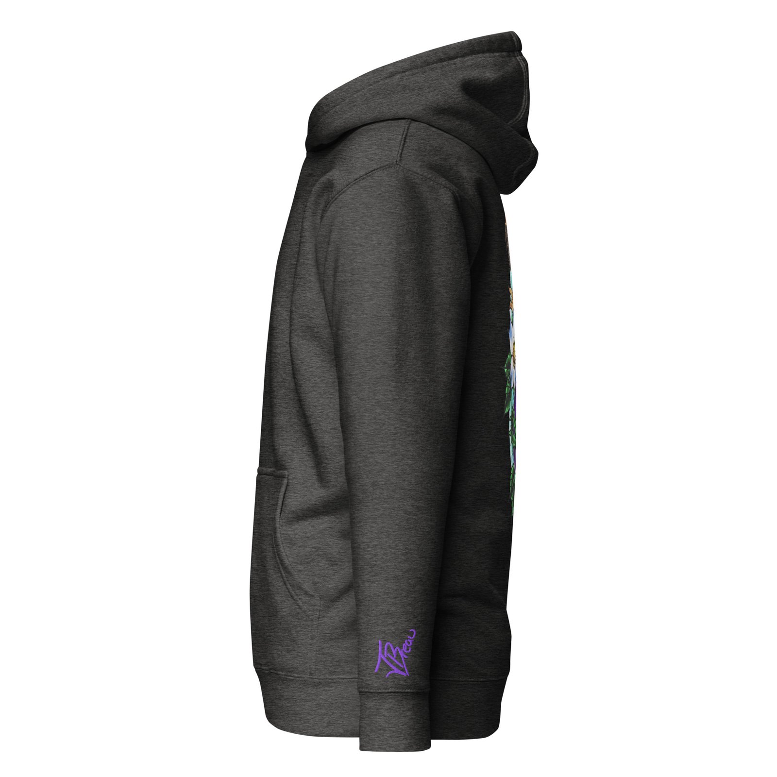 Ready to slay? Think high-quality cotton with a comfort-fitted hood, matching drawstrings, and a front pocket with a rocking art piece by Jason Breau of Ardent Ink Tattoo Studio Upgrade your look with this dope premium hoodie.