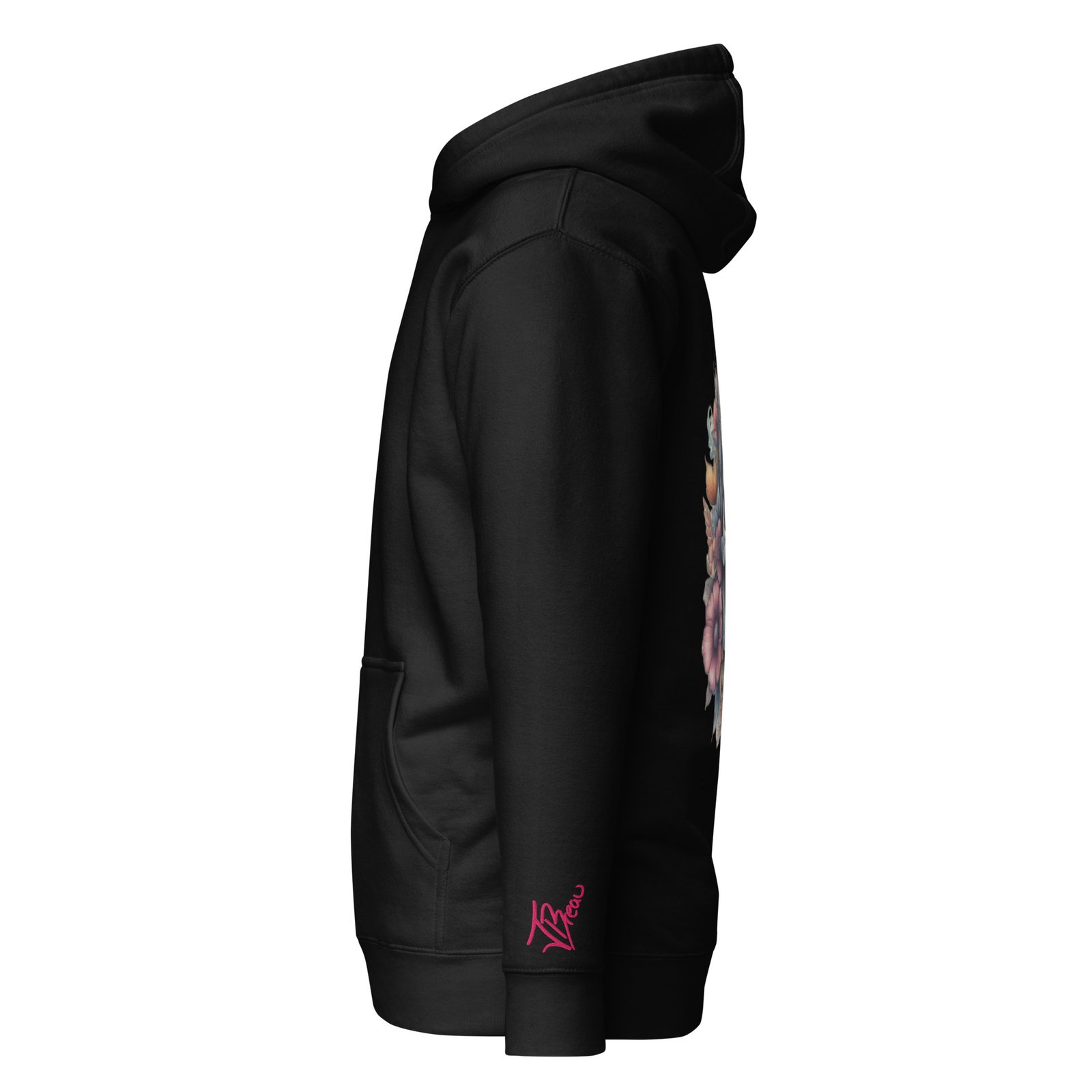 Ready to slay? Think high-quality cotton with a comfort-fitted hood, matching drawstrings, and a front pocket with a rocking art piece by Jason Breau of Ardent Ink Tattoo Studio Upgrade your look with this dope premium hoodie.