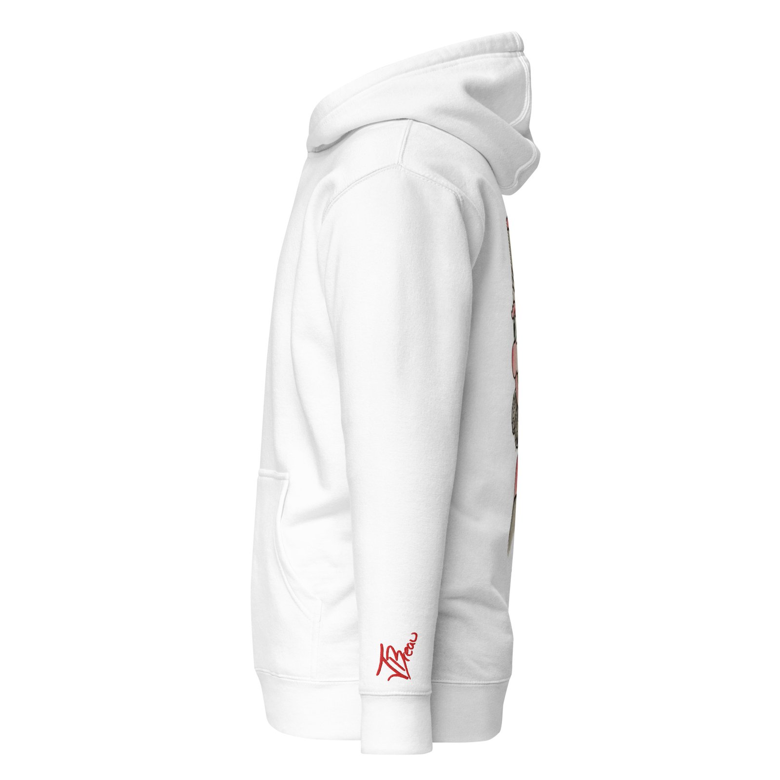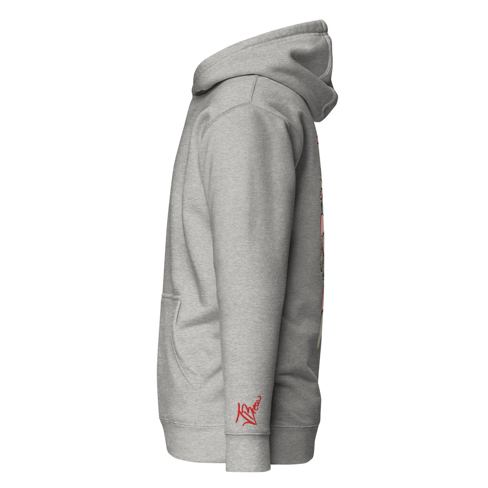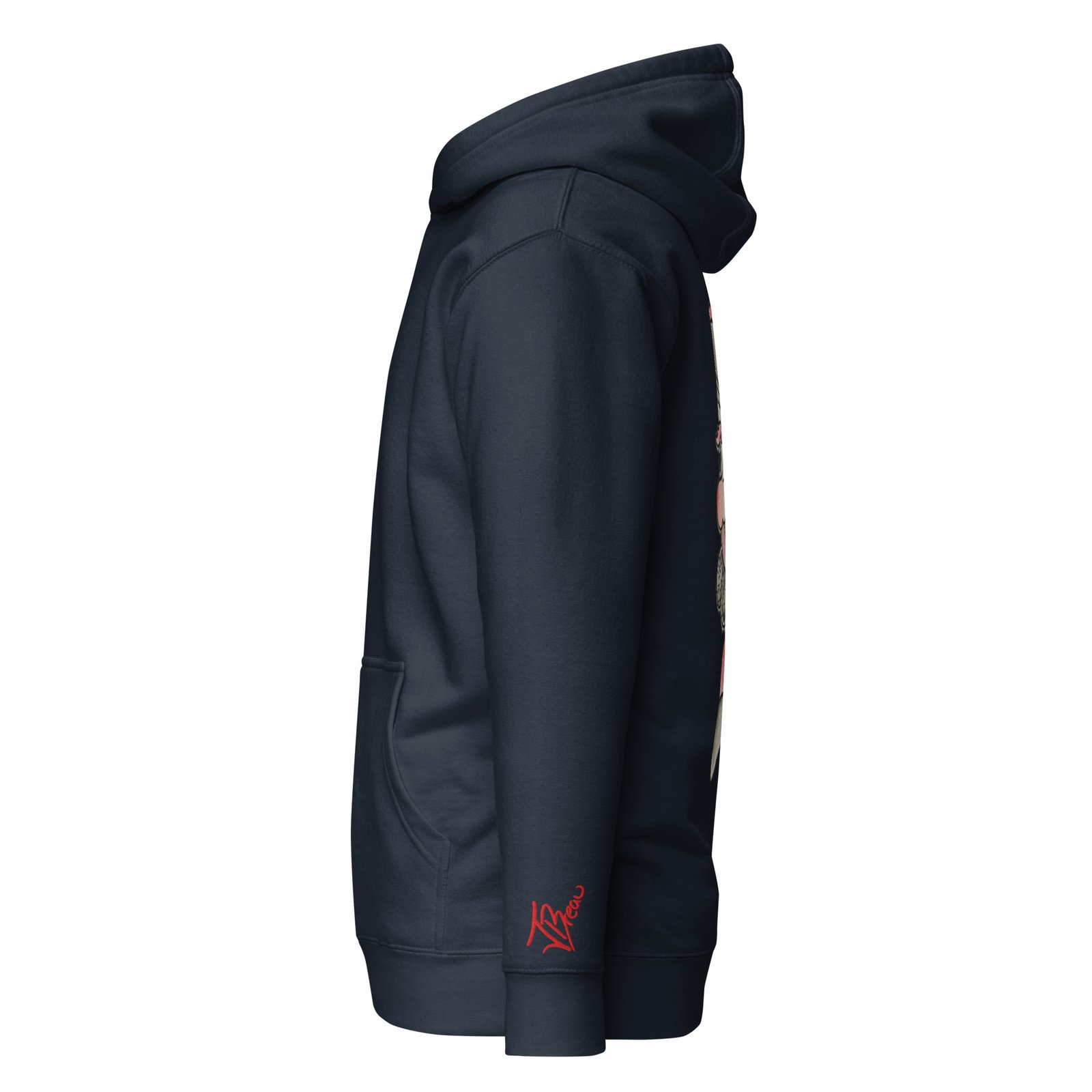 Ready to slay? Think high-quality cotton with a comfort-fitted hood, matching drawstrings, and a front pocket with a rocking art piece by Jason Breau of Ardent Ink Tattoo Studio Upgrade your look with this dope premium hoodie.