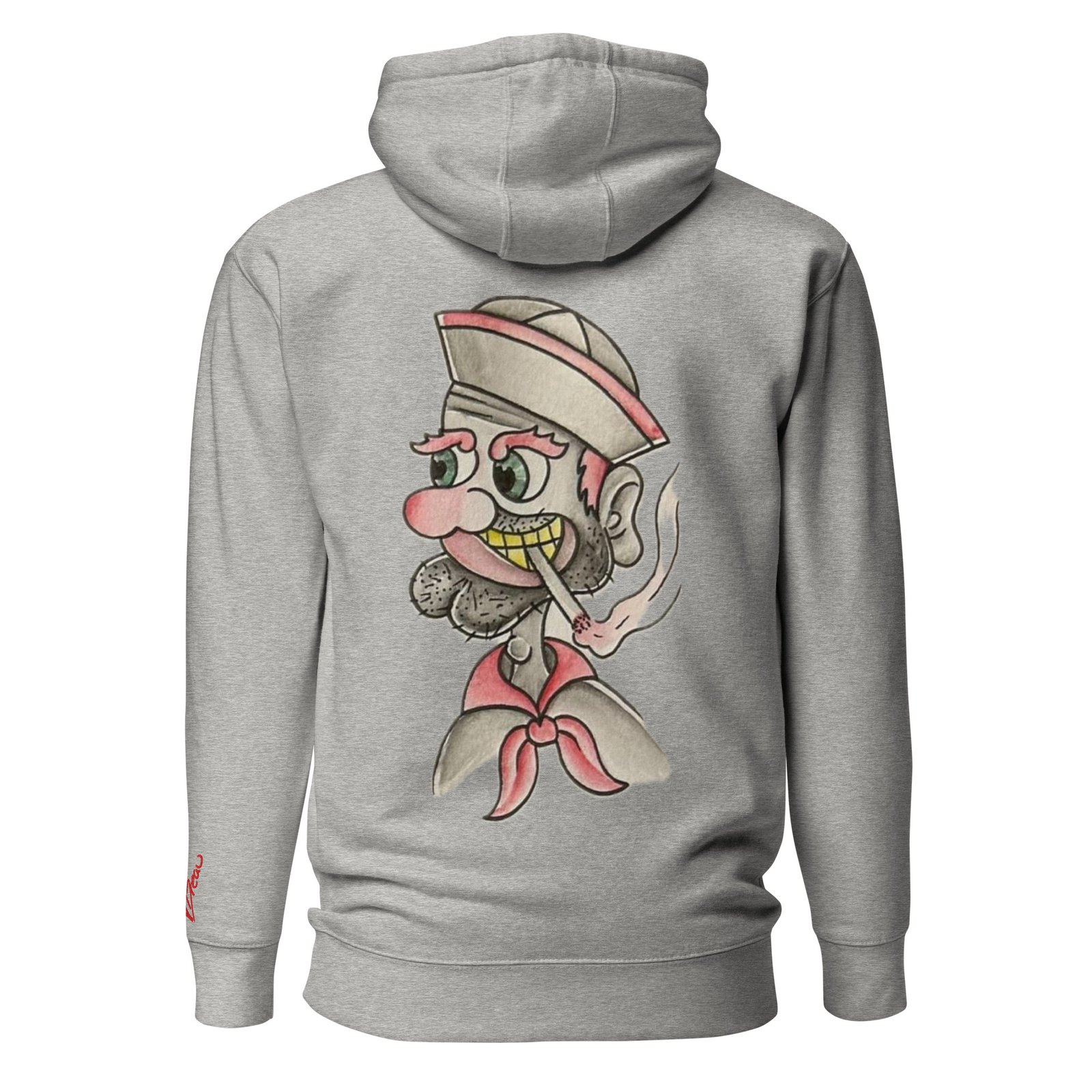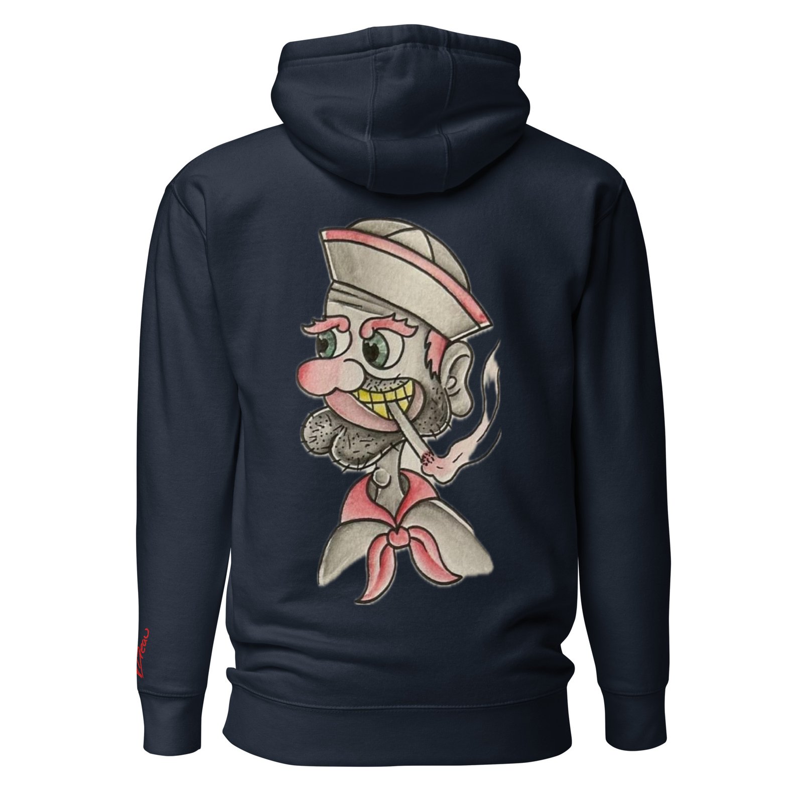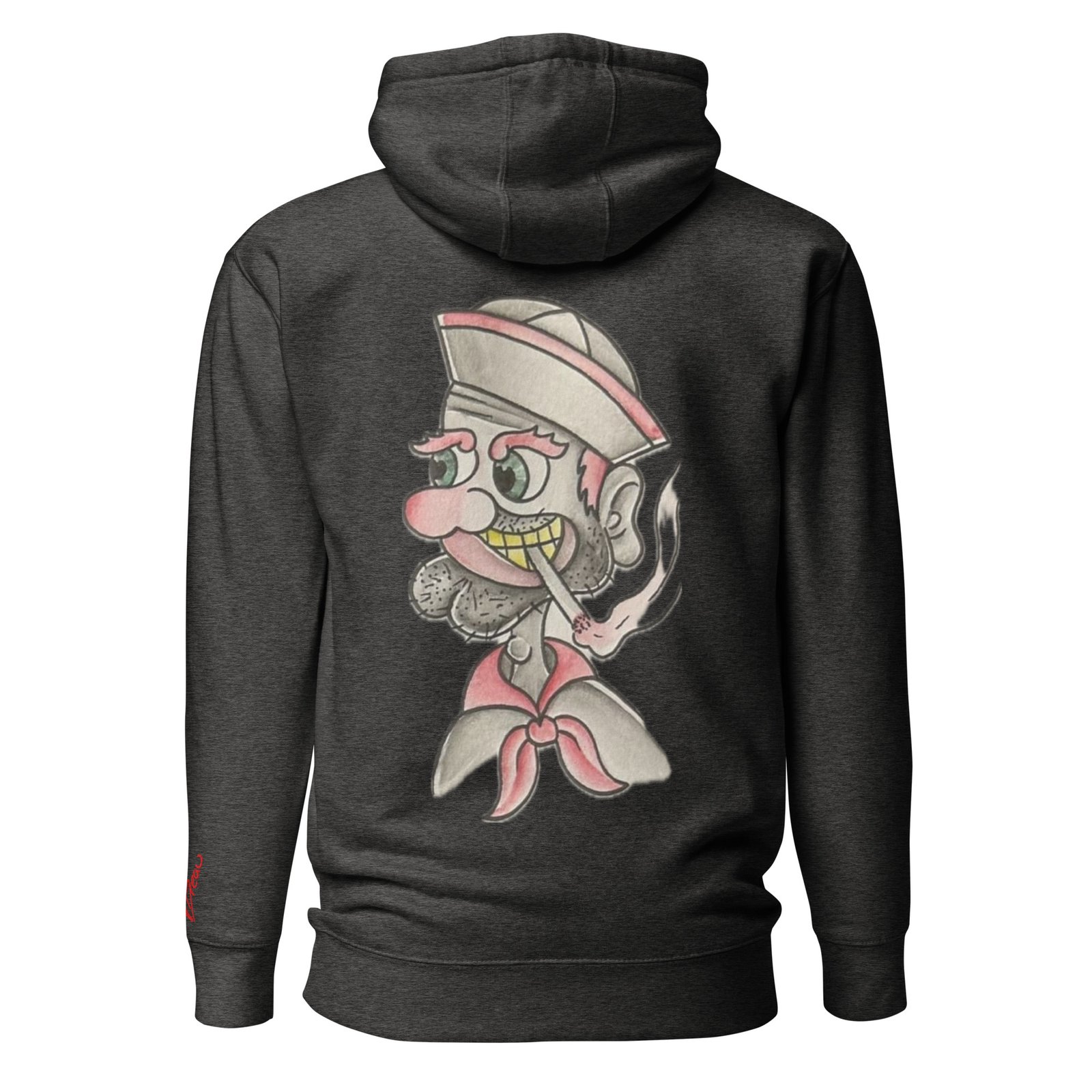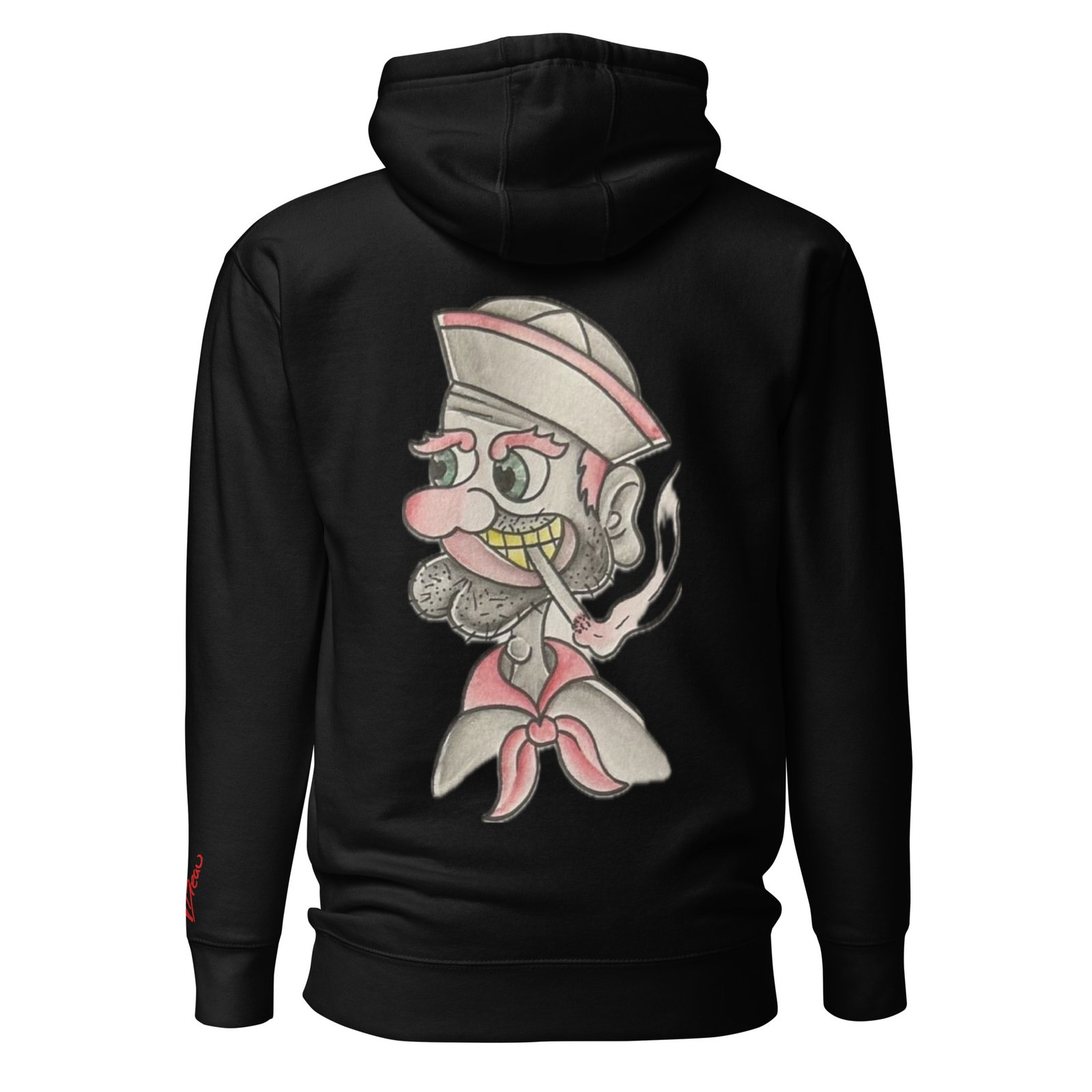Ready to slay? Think high-quality cotton with a comfort-fitted hood, matching drawstrings, and a front pocket with a rocking art piece by Jason Breau of Ardent Ink Tattoo Studio Upgrade your look with this dope premium hoodie.